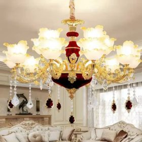 Đèn Chùm, Đèn Chùm Cổ Điển 15 Tay Màu Tím Đỏ ZIHA – Đèn Trang Trí Sang Trọng, Đèn Chùm Thả