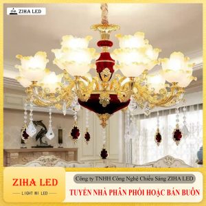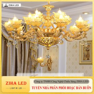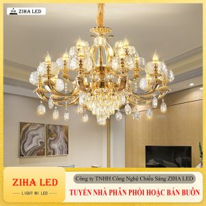 Đèn Chùm Hợp Kim 15 Tay Sang Trọng ZIHA – Đèn Chùm Tân Cổ Điển, Đèn Trang trí Phòng Khách
