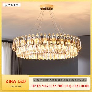 Đèn thả pha lê K9 hiện đại ZIHA – Kích thước D60cm, khung hợp kim mạ tĩnh điện cao cấp