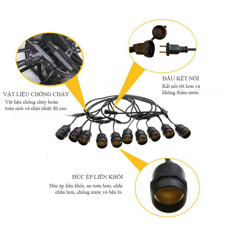 Chất liệu: Dây dẫn điện lõi đồng kết hợp đui đúc E27