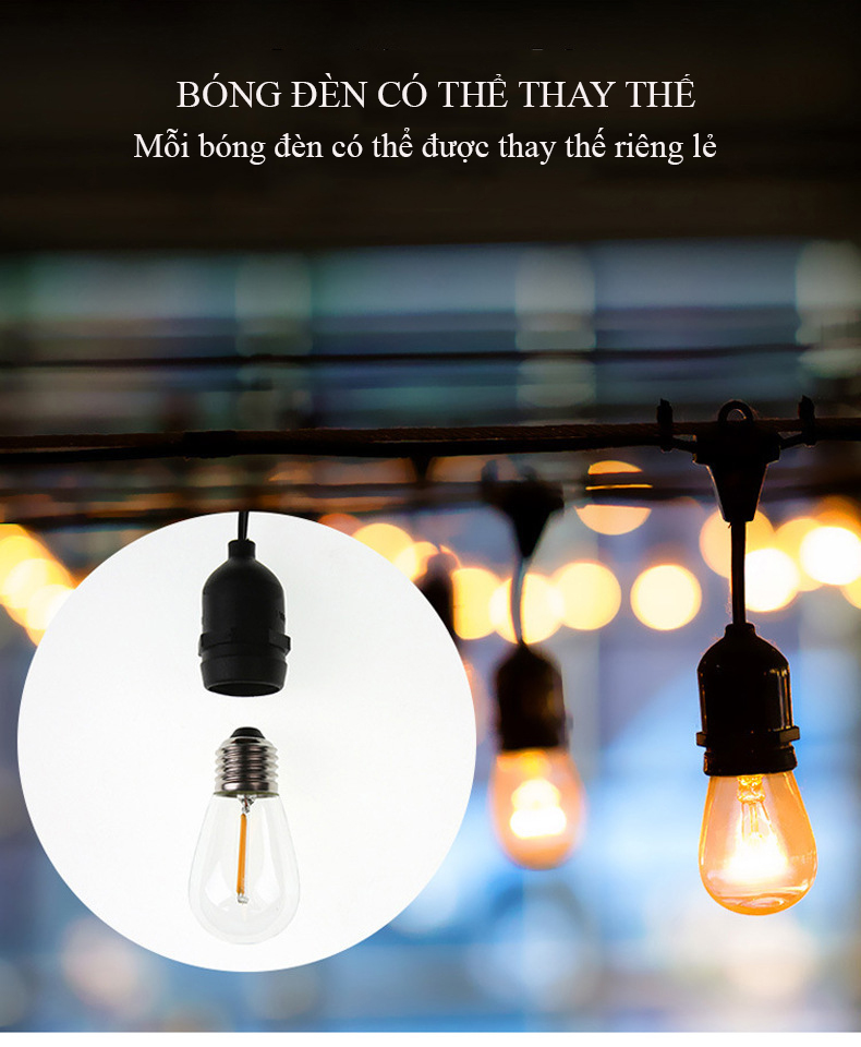 Dây Đui Đèn – Dây Đèn LED Trang Trí Ngoài Trời Chống Thấm Nước ZIHA