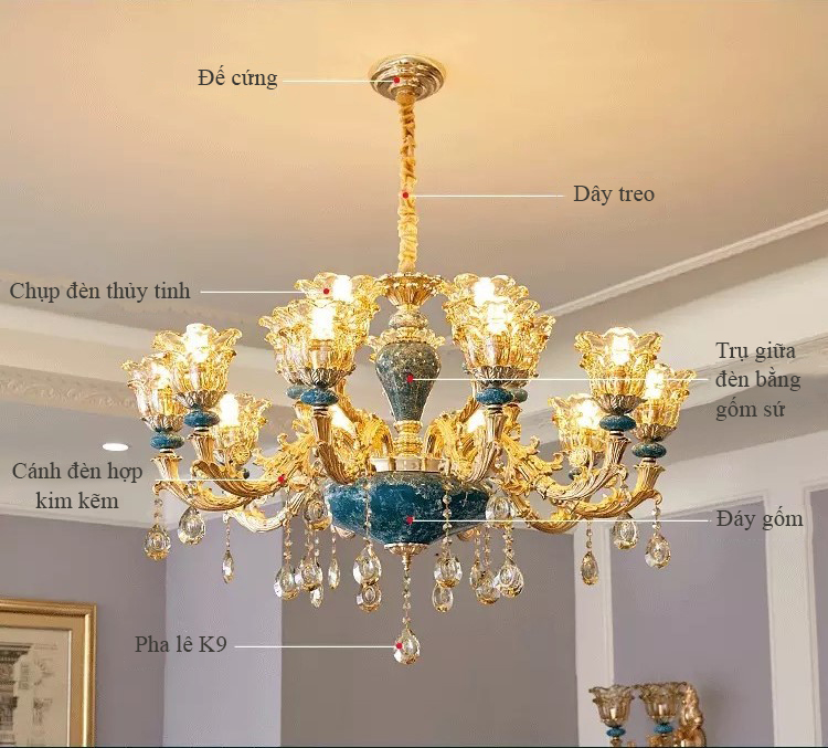 ĐÈN CHÙM HỢP KIM 15 TAY