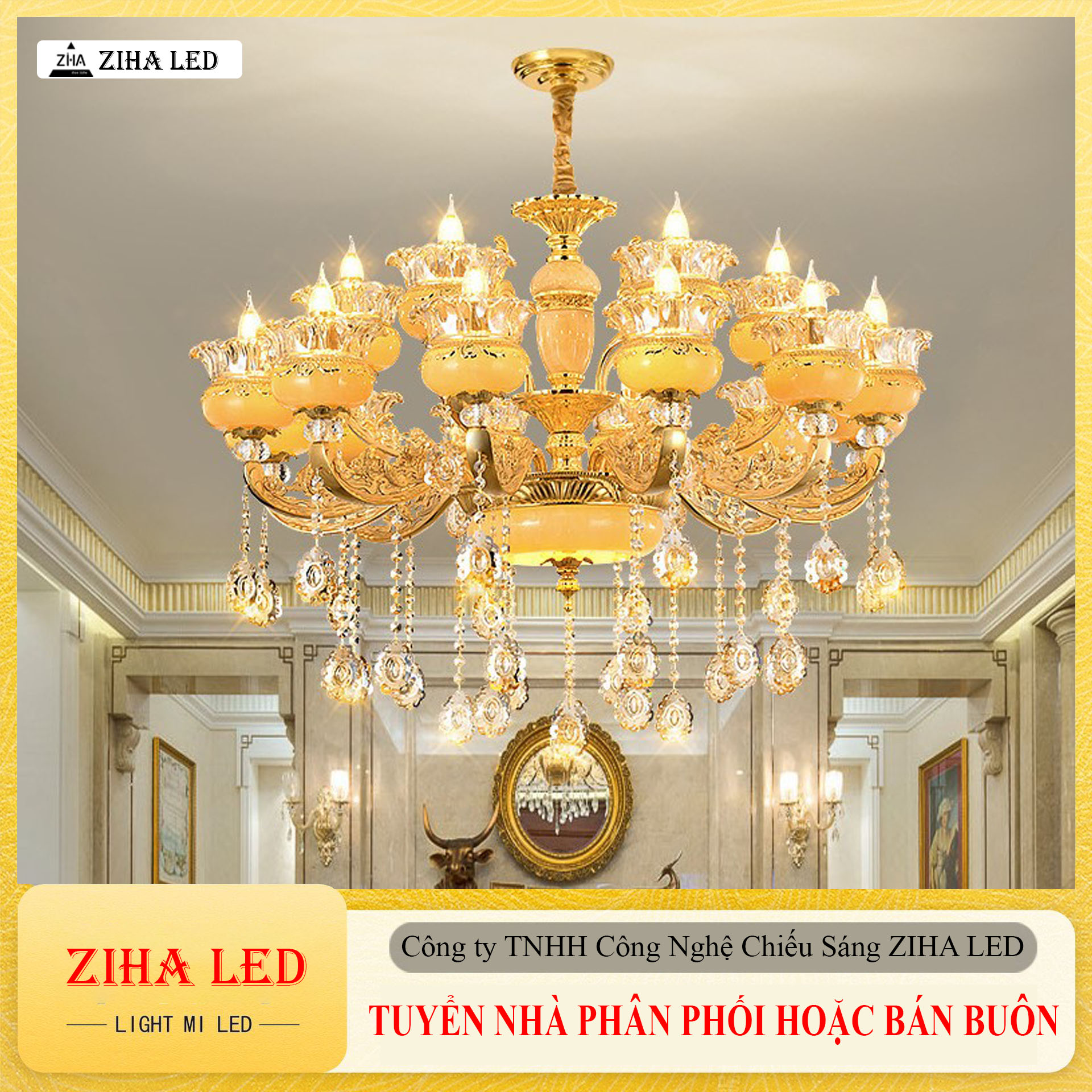 Đặt mua Đèn Chùm, Đèn Chùm Tân Cổ Điện Cá Chép ZIHA Loại 15 Tay, Trang Trí Nhiều Không Gian