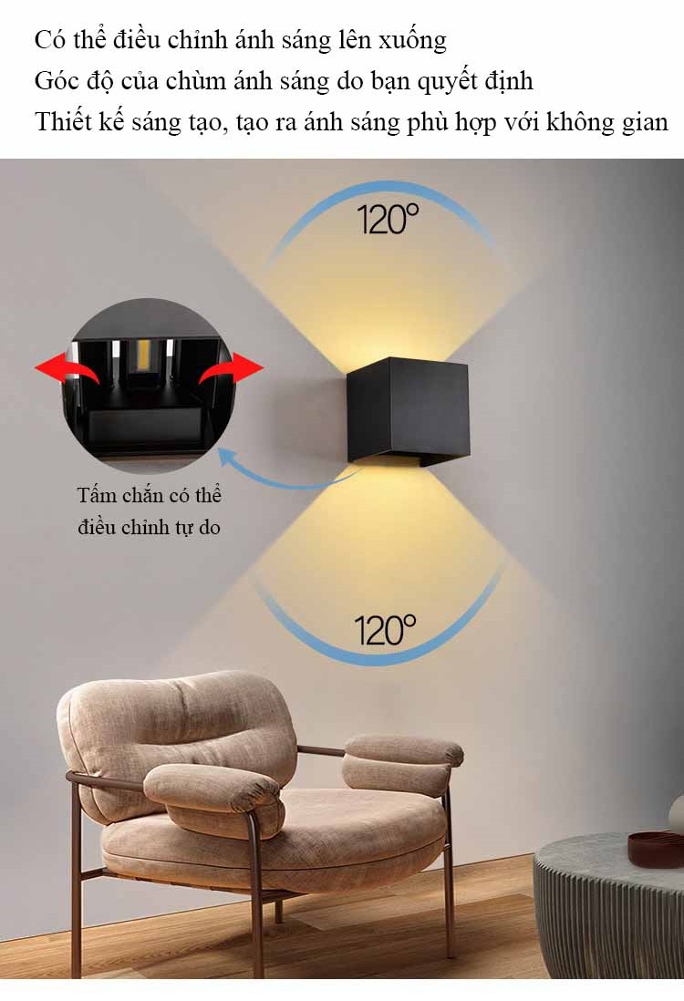 Đèn Hắt Tường 2 Đầu, Đèn Tường, Đèn Hắt Góc Siêu Sáng 2 Màu Đen /Trắng