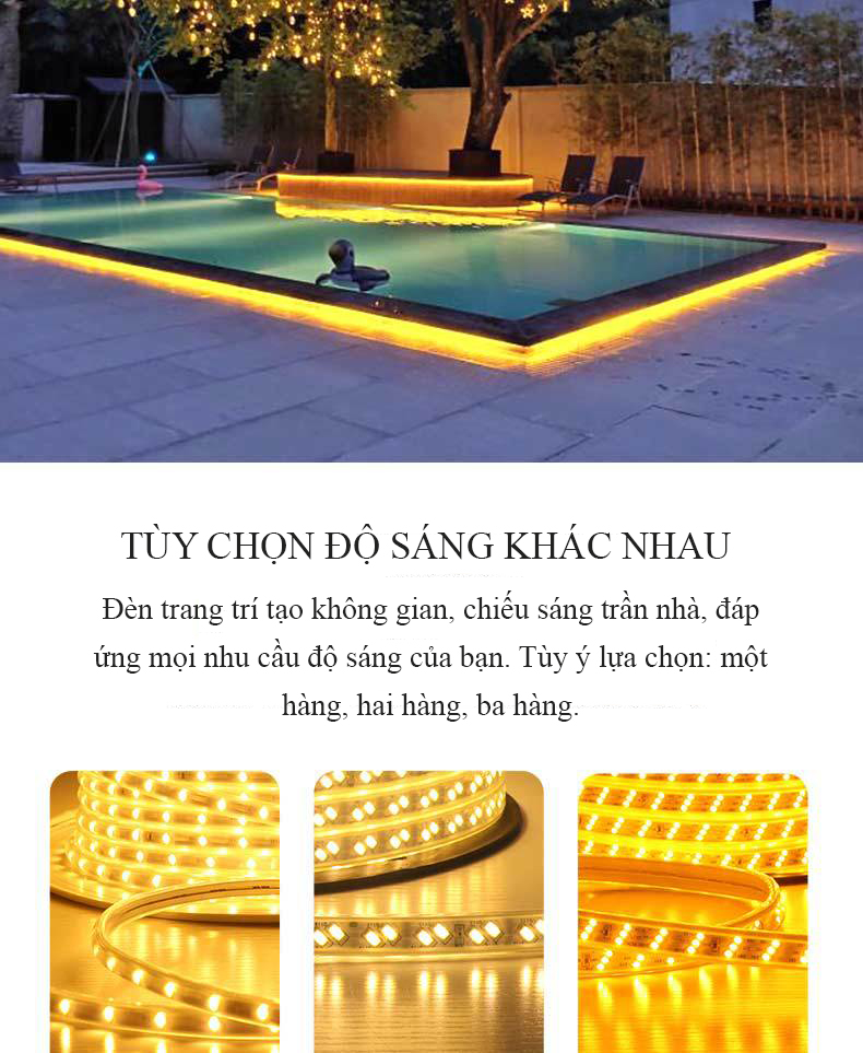 Cuộn Đèn LED Dây 2 hàng/3 hàng – Đèn LED Trang Trí 1 Màu Siêu Sáng, Tiết Kiệm Điện Năng