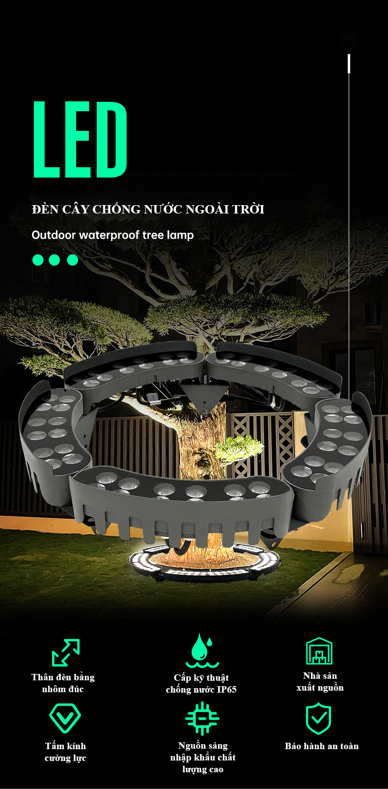 - Đèn chiếu cây 12w có góc chiếu sáng 8/15/30/45/60/90/120 độ, giúp độ rọi tập trung vào tán lá cây cảnh, khóm hoa.