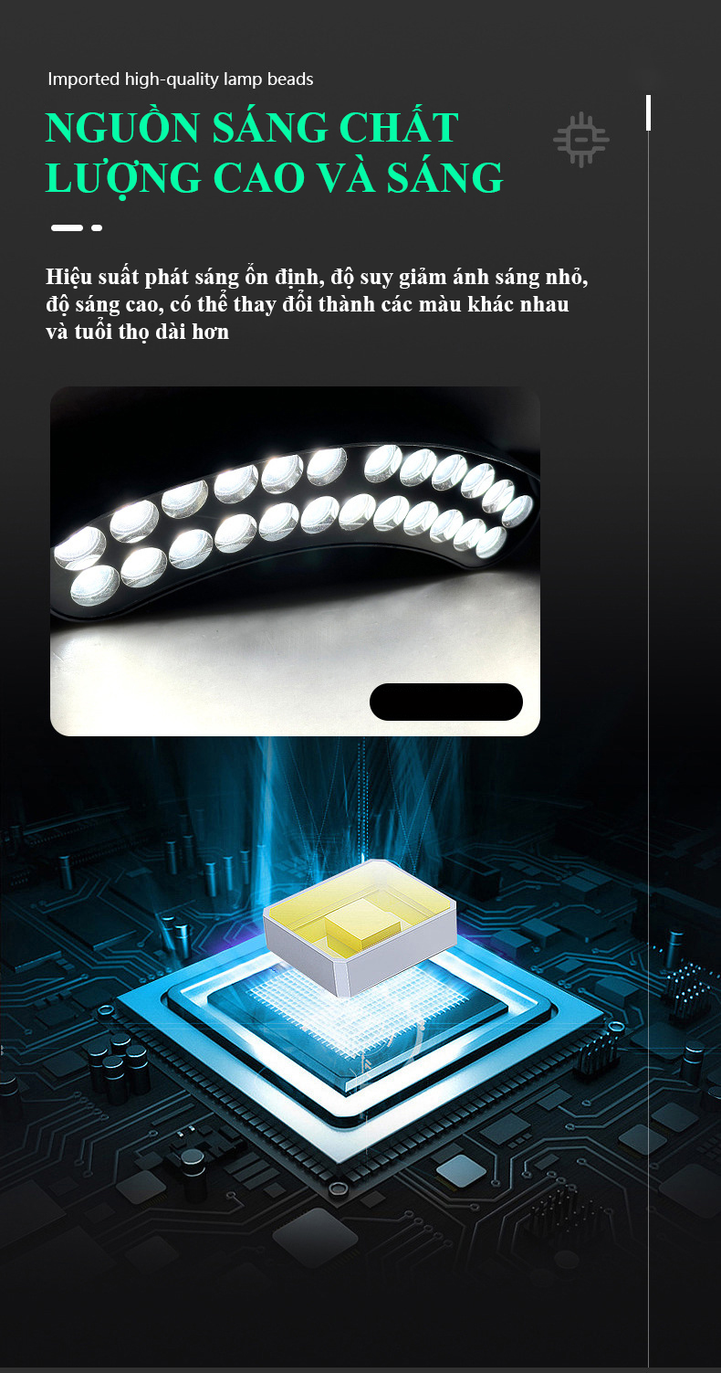 - Đèn sử dụng chip LED mắt truyền sáng tốt.