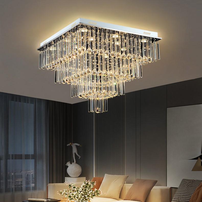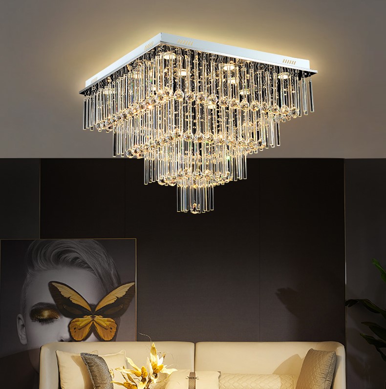 Đèn Ốp Trần ZIHA – Đèn Mâm Pha Lê Cao Cấp Kích Thước 60X60CM, Phong Cách Tối Giản