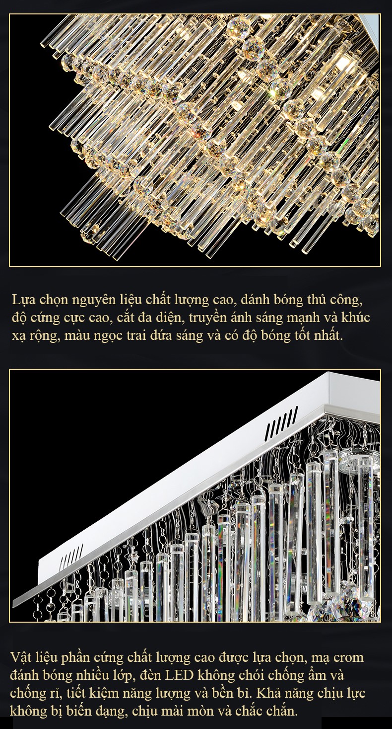 Chất liệu: Hợp kim sơn tĩnh điện, pha lê cao cấp