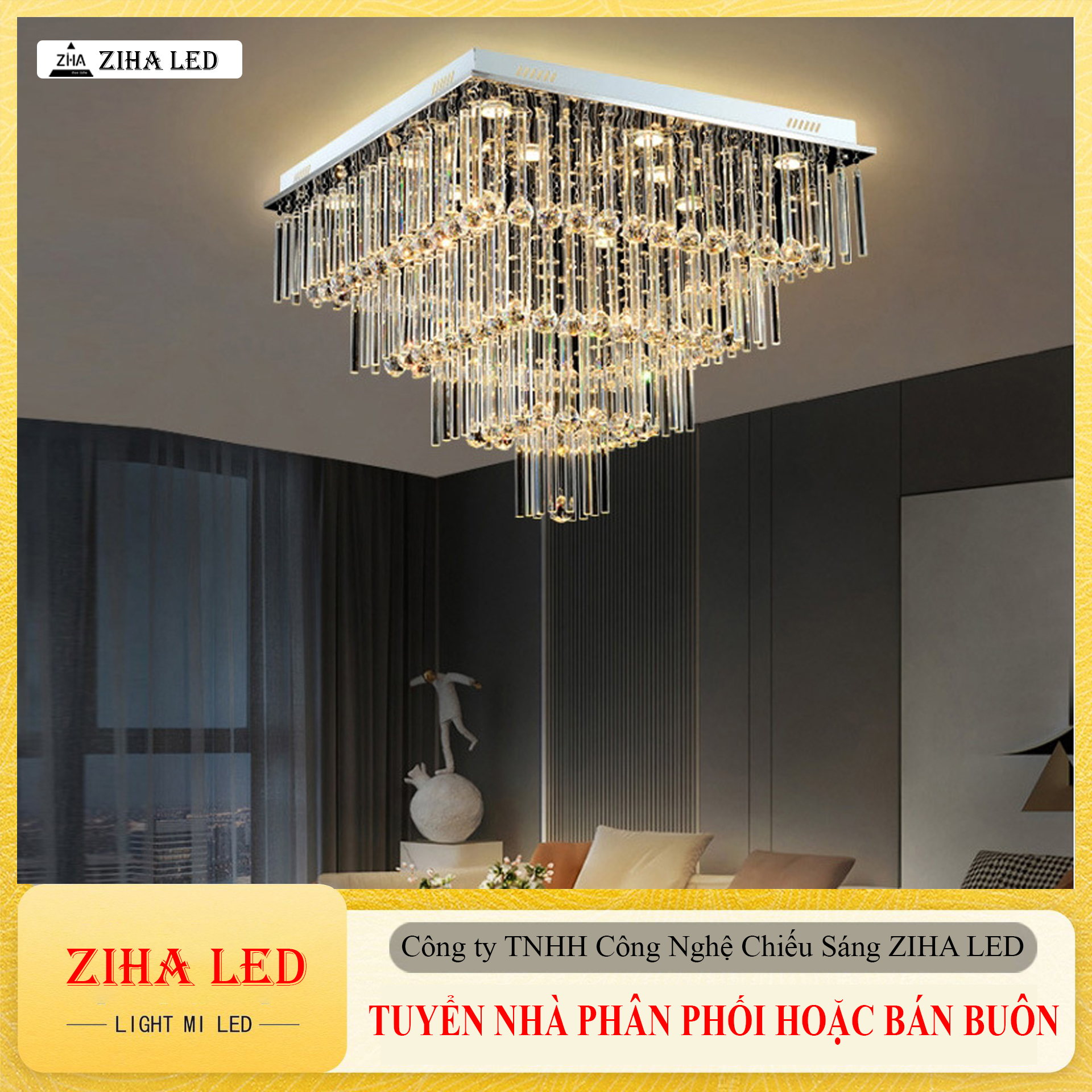 Đặt mua Đèn Ốp Trần ZIHA - Đèn Mâm Pha Lê Cao Cấp Kích Thước 60X60CM, Phong Cách Tối Giản