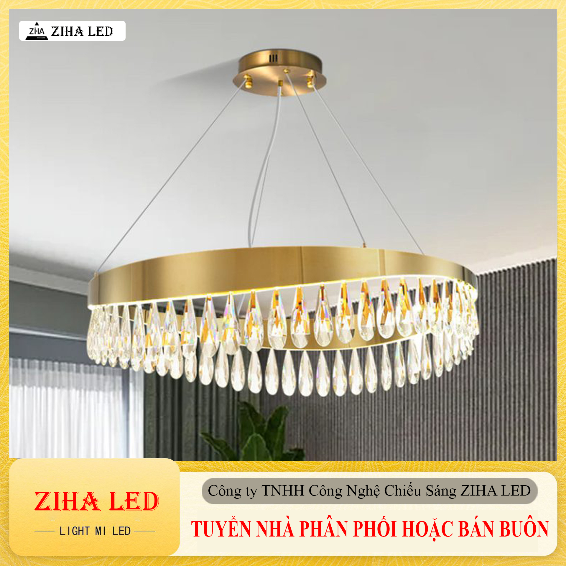 Chất liệu: Pha lê cao cấp, hợp kim mạ vàng.