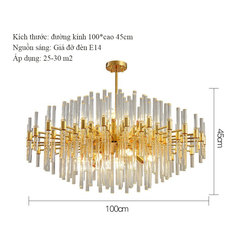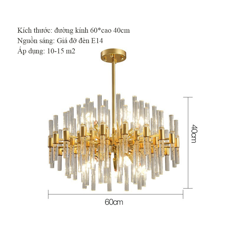 Cấu trúc nhiều lớp: Các ống thủy tinh được sắp xếp thành nhiều lớp đồng tâm, tạo chiều sâu cho chiếc đèn đa chiều, lung linh.