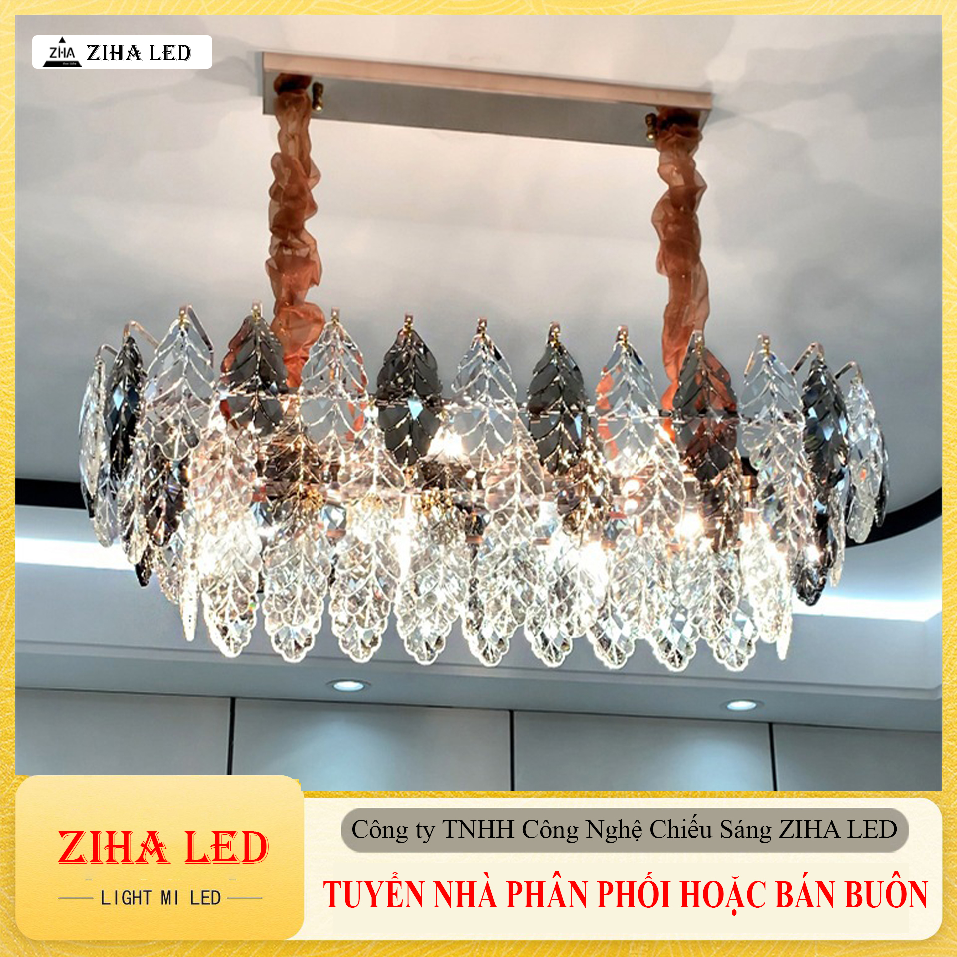Đèn Thả Trần Lá Pha Lê Sang Trọng – Đèn Trang Trí ZIHA Chất Liệu Hợp Kim Cao Cấp