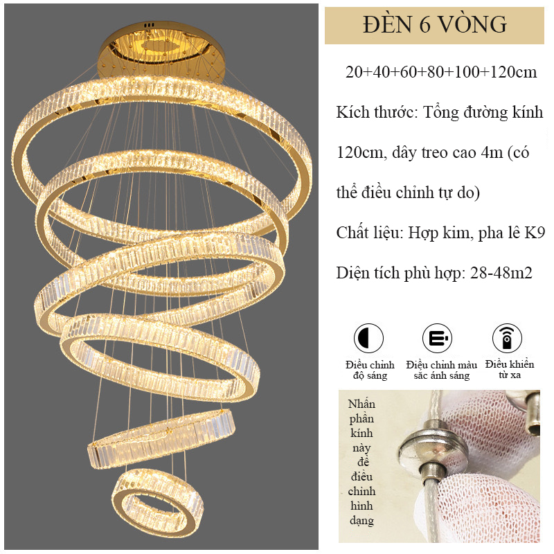 Kích thước đèn 6 vòng: D20/40/60/80/100/120 cm