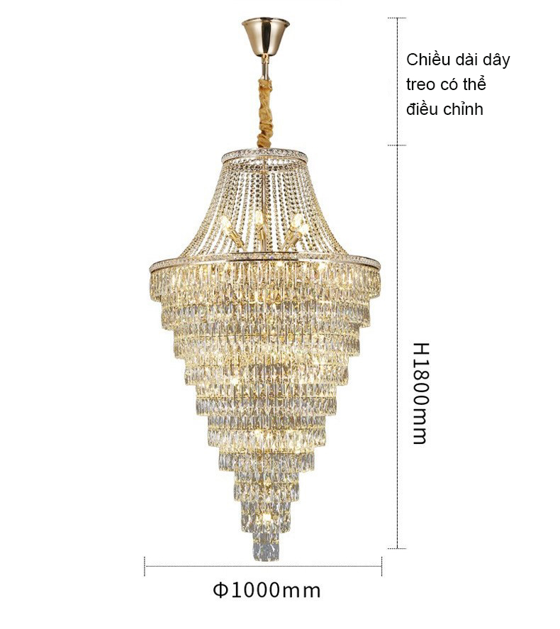 Đặt mua Đèn Thông Tầng Pha Lê, Đèn Thả Thông Tầng Tinh Tế - Dáng Dài Thả, Dây Treo Có Thể Điều Chỉnh