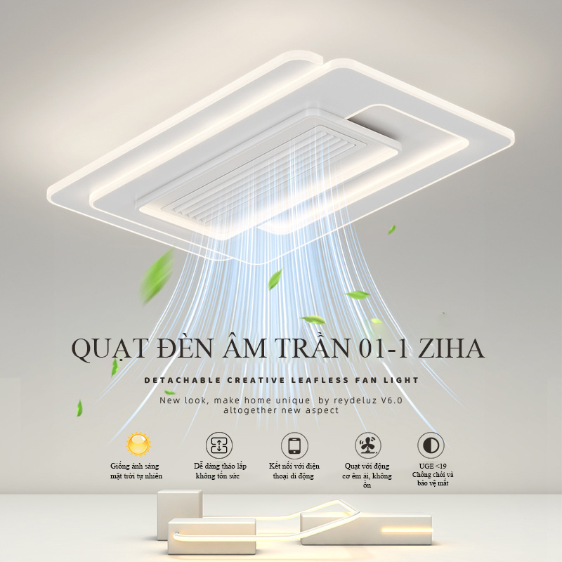 Điều khiển thông minh: Nhiều mẫu quạt đèn trần không cánh toàn phổ có thể điều khiển từ xa hoặc qua ứng dụng trên điện thoại, cho phép người dùng dễ dàng điều chỉnh chế độ quạt và ánh sáng theo nhu cầu.