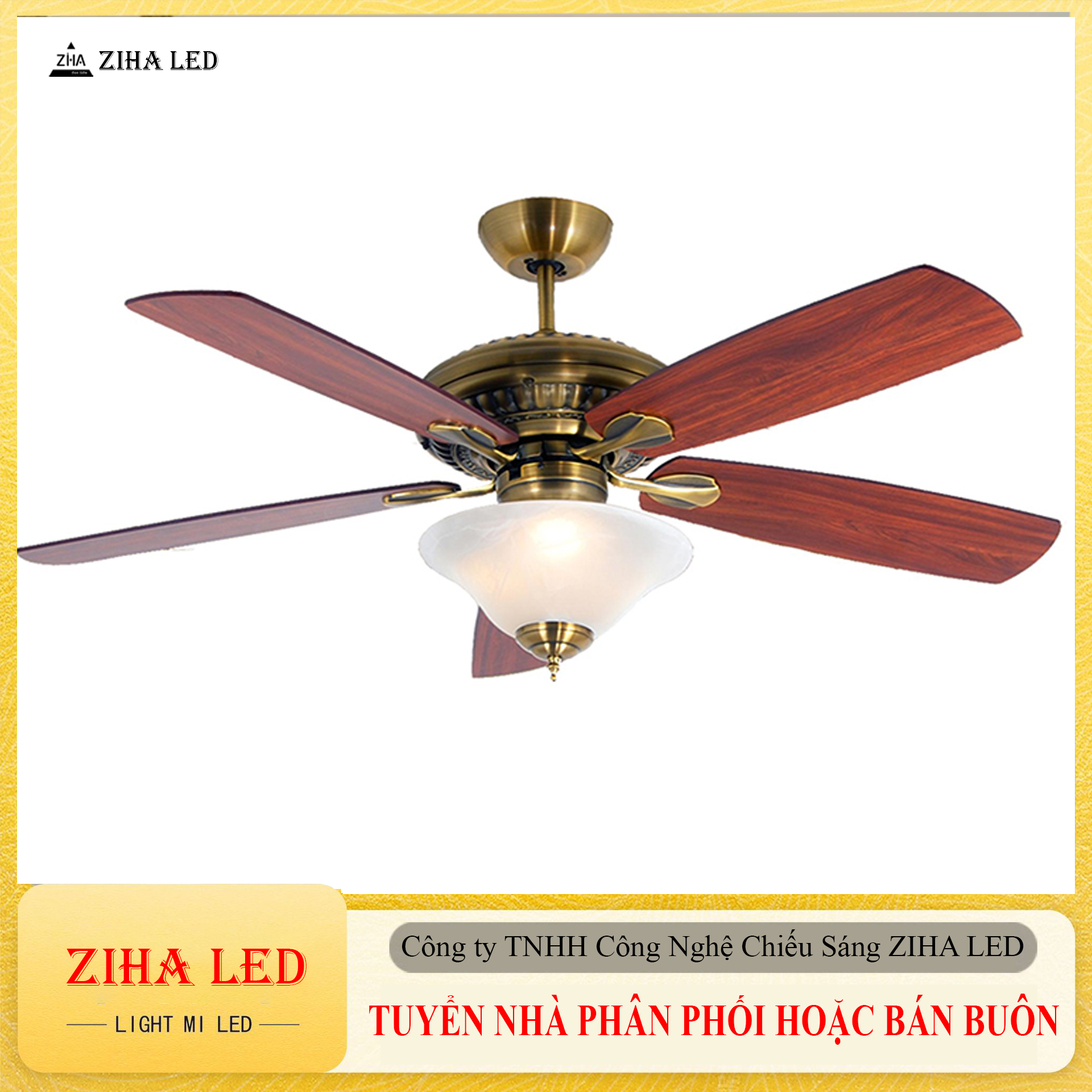 Quạt trần, Quạt Trần 5 Cánh Gỗ Hiện Đại, Quạt Trần ZIHA Loại 52 inch, 100% Lõi Đồng Cao Cấp