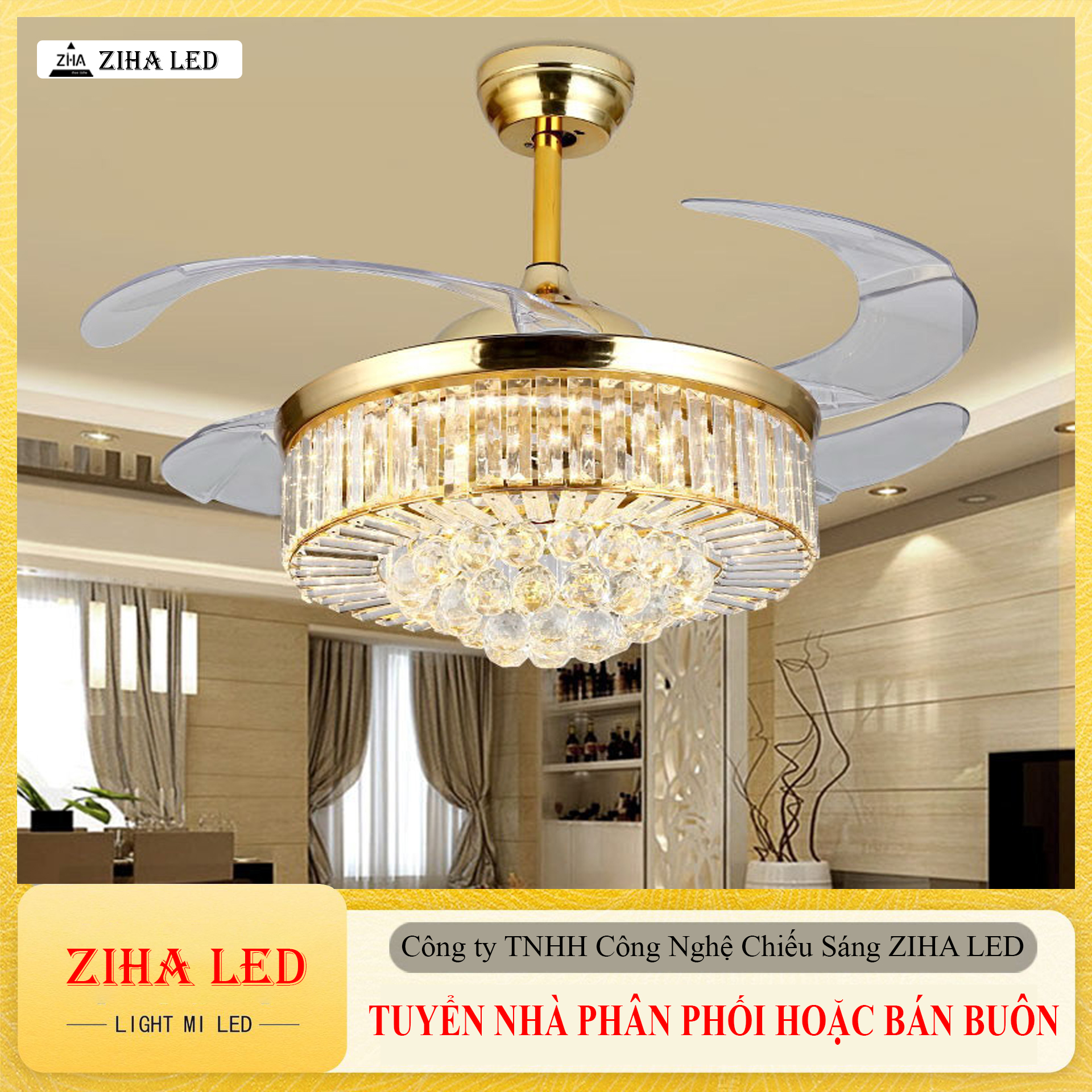 Đặt mua Quạt trần Pha Lê 4 Cánh Trong Hiện Đại Ziha - Ba Chế Độ Đèn, Điều Khiển Từ Xa