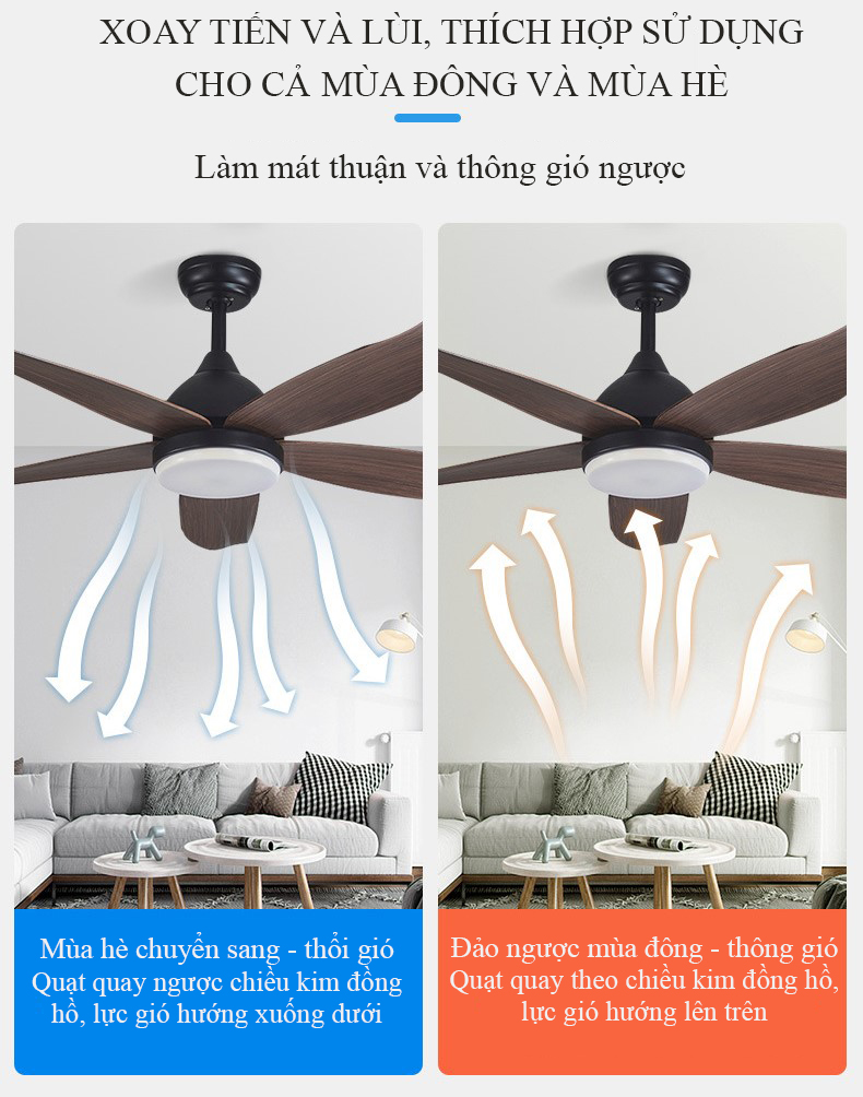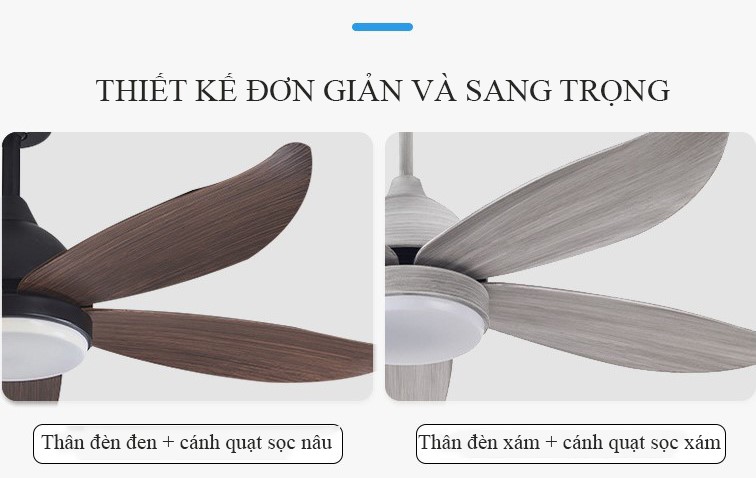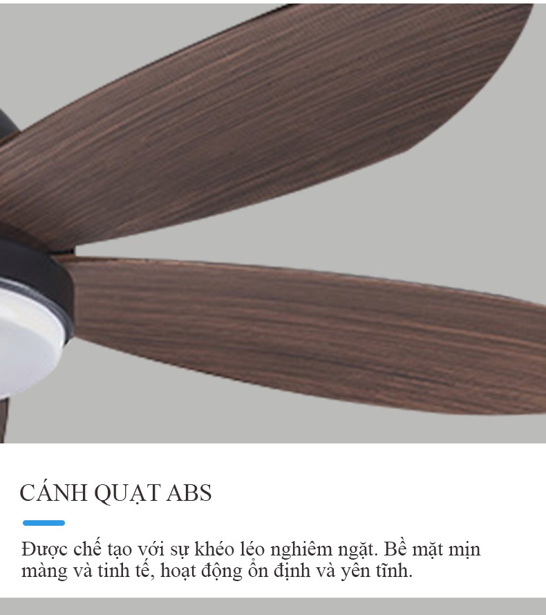 5 cánh nhựa ABS, màu ghi gỗ và màu vân gỗ